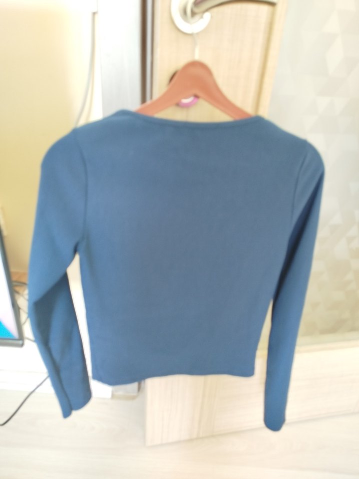 lacivert renk, yaka detaylı, uzun kollu, kadın bluz .Orta uzunlukta, rahat ve sıcak dokulu, gündelik kullanıma uygun.
