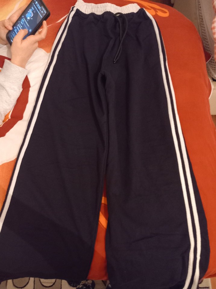 Boyu uzun geldi o yüzden satıyorumm. siyah renkli, yanlarında beyaz şerit bulunan bol kesim çocuk eşofman altı. Yumuşak ve sıcak kumaştan, elastik bel ve bağcıklı olarak tasarlanmıştır.