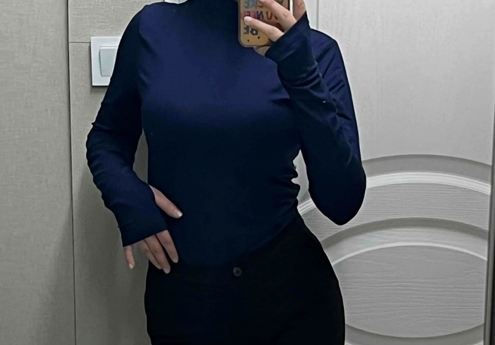 Lacivert renkte, yarim yakalı ve uzun kollu kadın bluz. İnce ve düz kesimiyle ofis ve günlük şıklık için uygundur. etiketini söküp yıkadım hiç giymedim