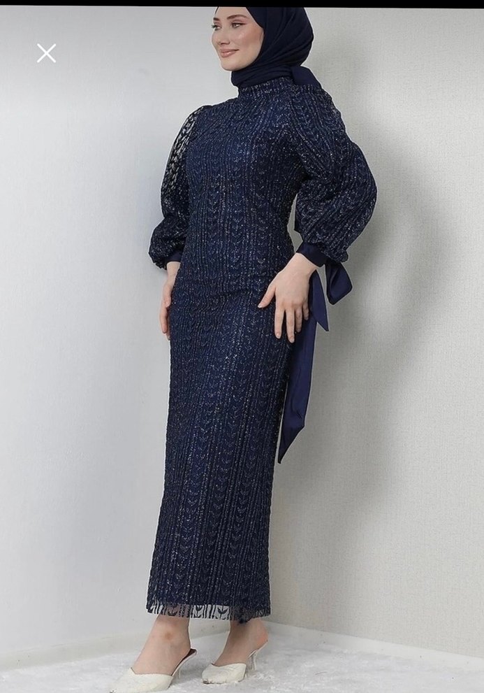 Lacivert Yılan Desenli Uzun Abiye Elbise 42 uyumlu