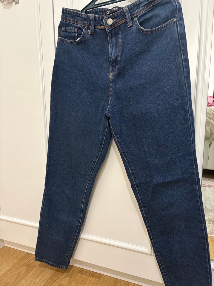 Lacivert kot kumaştan, bol kesim ve midi boyda kadın jean. Günlük kullanıma uygun, sade ve şık tasarım sunar. Mom jean marka temsili 25 beden