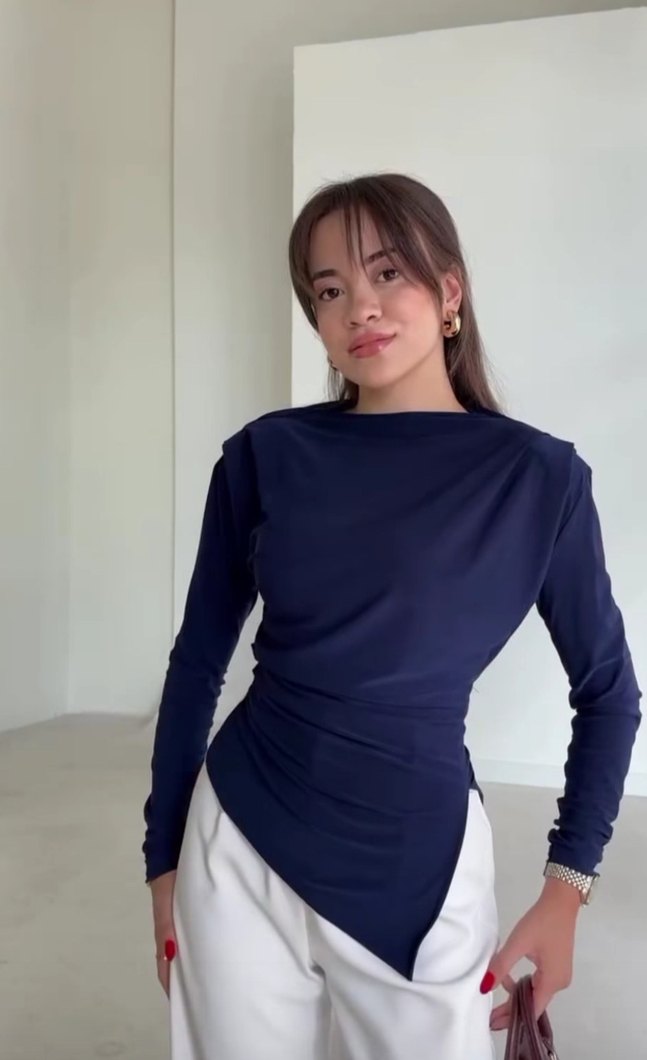 Lacivert Yüksek Yakalı Kadın Bluz