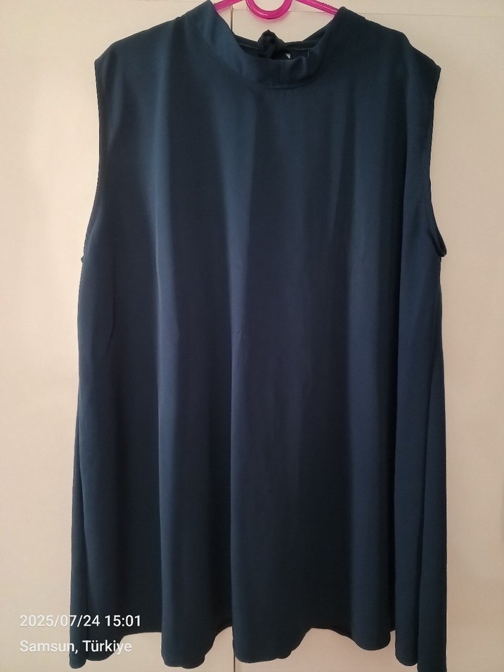 Lacivert kolsuz tunik, yüksek yakalı ve bol kesimdir. Midi boyda, akıcı sentetik kumaştan, günlük kullanıma uygun minimalist stile sahiptir. marka temsilidir, özel dikimdir