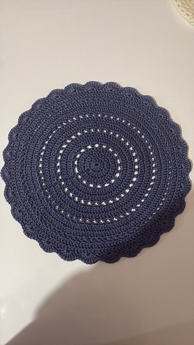 Lacivert yuvarlak Runner, dalgalı kenarları ve hafif delikli deseniyle yumuşak