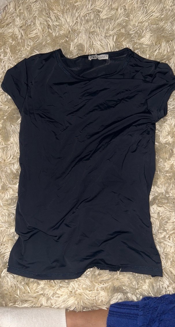 Kısa kollu, bisiklet yaka siyah hamile tişörtü, yumuşak sentetik kumaştan, rahat ve vücuda oturan kesimde. Günlük kullanıma uygun sade ve rahat goth tarzı.