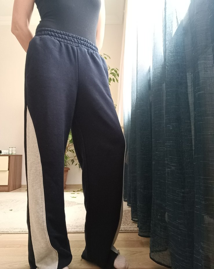 Lacivert renkte, yan şerit detaylı rahat kesim eşofman altı. Yumuşak ve sıcak kumaştan, günlük kullanım için uygundur.