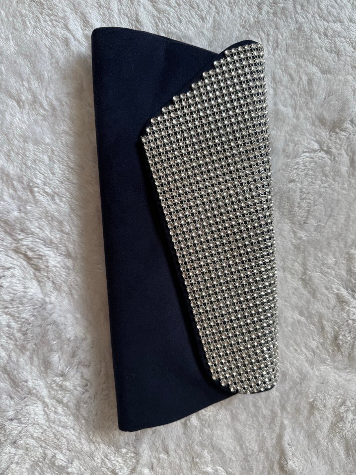 Lacivertrenkli, parlak pullu kapaklı ve yumuşak sentetik kumaştan yapılmış, modern ve göz alıcı bir kadın portföy çantası. Açık hava etkinlikleri için uygun. ✨