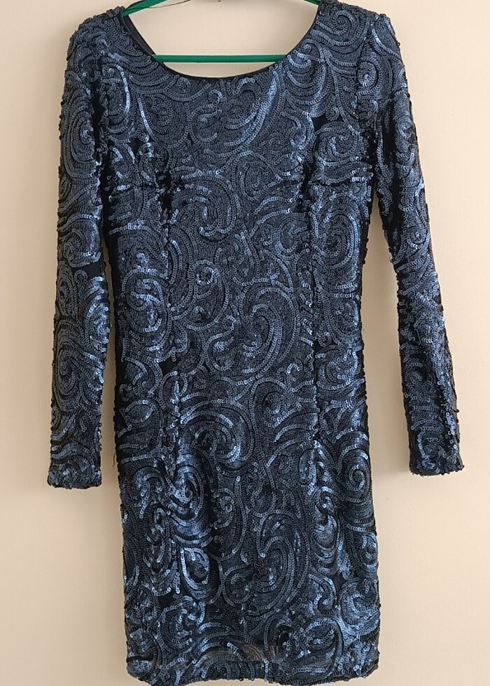 LacivertPul işlemeli abiye gece elbisesi