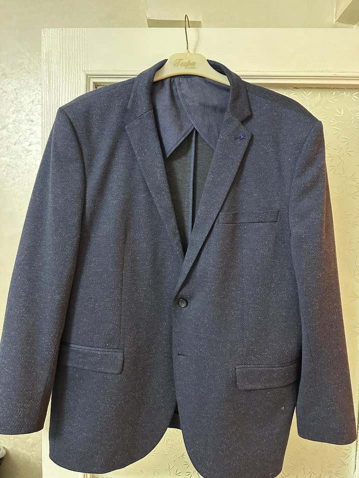 Lacivert renkli, düğmeli ve uzun kollu erkek takım elbise ceketi. Normal boyda, regular fit ve klasik modern tarzda, iş ortamına uygun sade bir model.