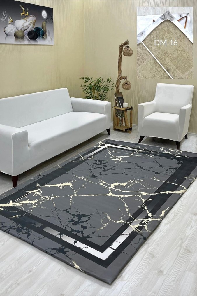 Modern klasik tarzda, dekoratif bordürlü halı örtüsü 4m² (160*230) ölçüde altta ekstra kayma önleyici 2 adet lastik eklentisi ve 4 kenar lastiklidir.