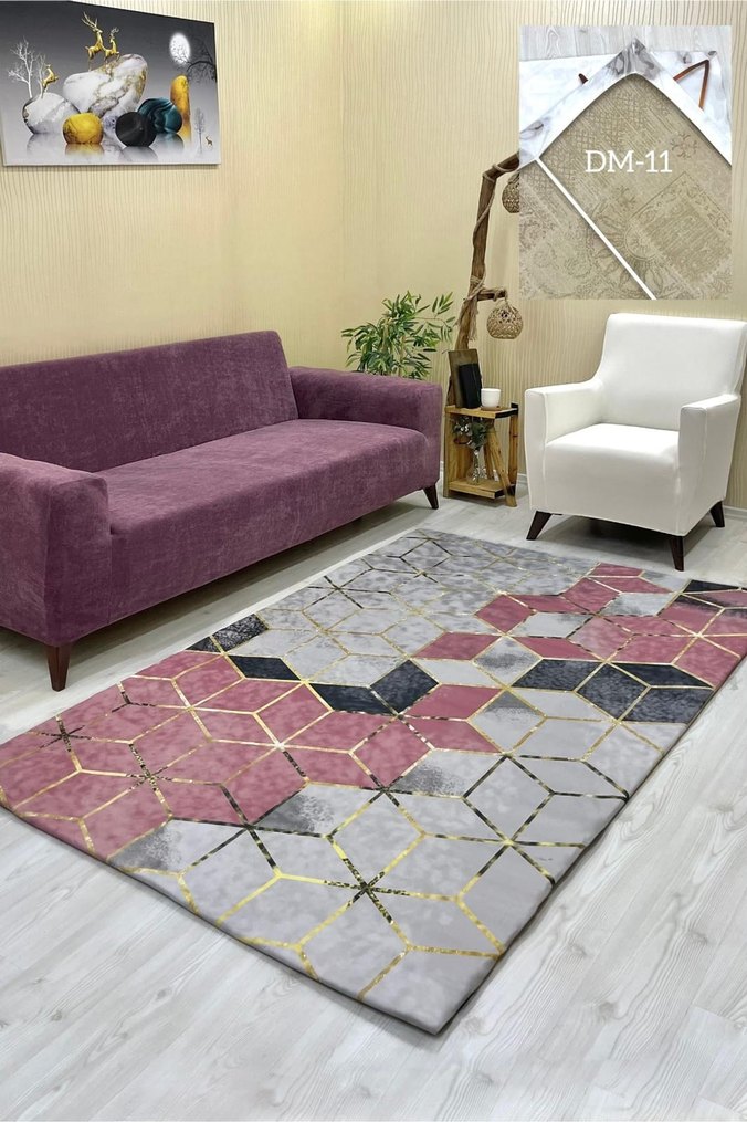 Modern klasik tarzda dekoratif bordürlü halı örtüsü 6m² (200*300) ölçüde altta ekstra kayma önleyici 2 adet lastik eklentisi ve 4 kenar lastiklidir.