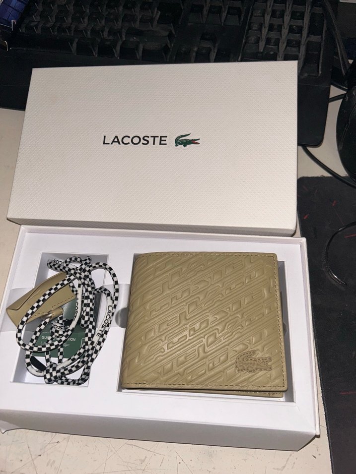 Lacoste marka, baskılı desenli altın renk erkek cüzdanı kutusunda, yanında kareli iplik ile birlikte sunulmaktadır. Klasik zarafet ve sokak stili birleşimi.Orjinal cüzdandır replika değildir