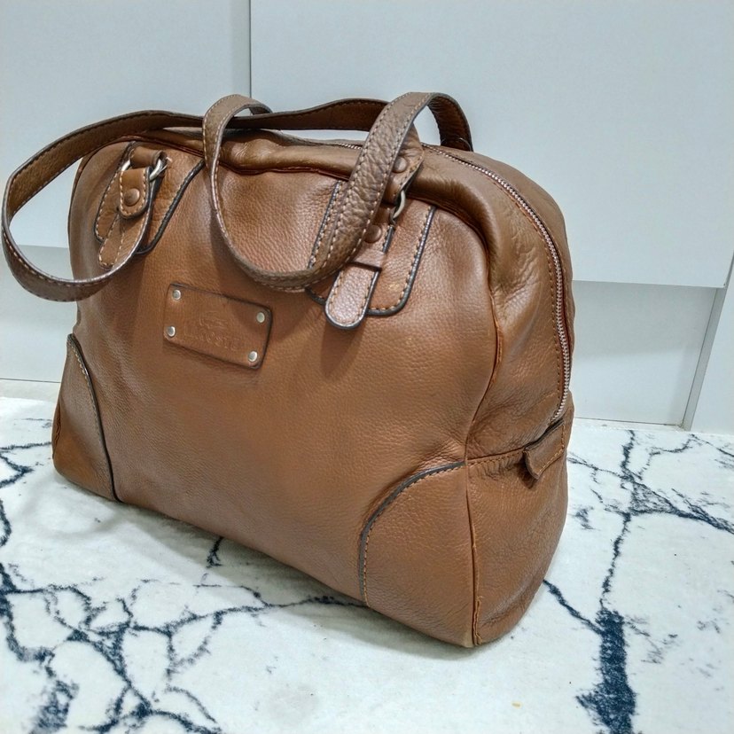 LACOSTE Bej Kadın Deri Tokalı Çanta hakiki deri