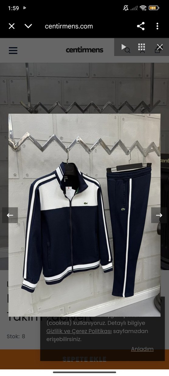 Lacoste marka, uzun kollu, fermuarlı ve bisiklet yaka erkek eşofman takımı. Koyu renk ve beyaz detaylı, rahat kesim, sıcak tutan kumaştan üretilmiştir beden s m l xl XXL xxxl
