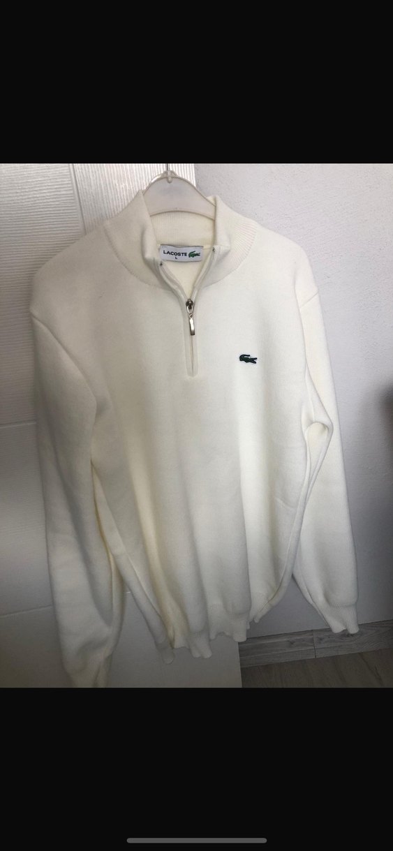 Orijinal üründür hiç giyilmedi,etiketi mevcut değil. Lacoste markalı beyaz fermuarlı erkek sweatshirt, uzun kollu ve yuvarlak yakalıdır. Yumuşak kumaştan, rahat kesimlidir ve günlük sokak tarzına uygundur.