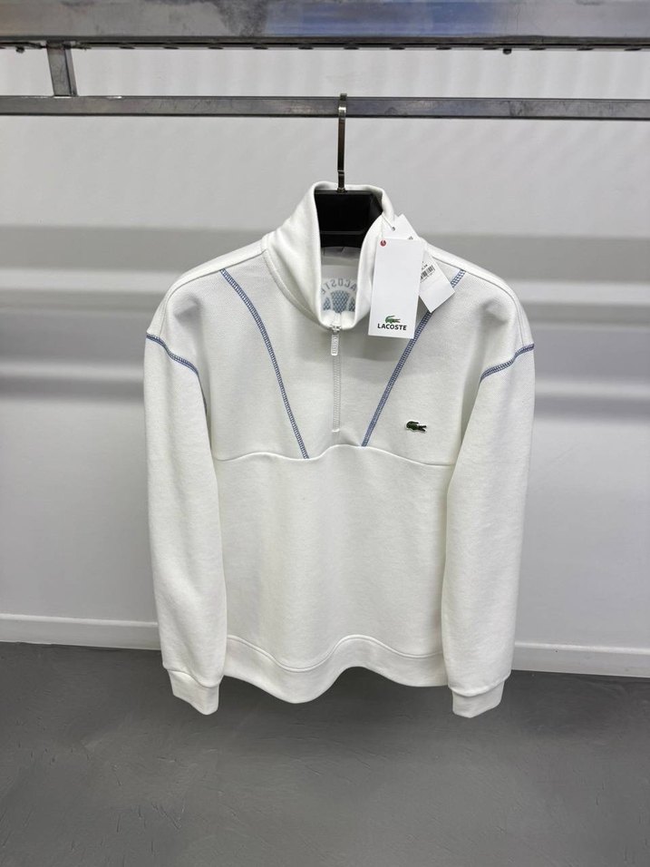 Lacoste beyaz fermuarlı sweatshirt, uzun kollu ve yumuşak kumaştan. Regular fit ve bisiklet yaka ile günlük sokak stiline uygun. Gri detaylar şıklık katıyor.