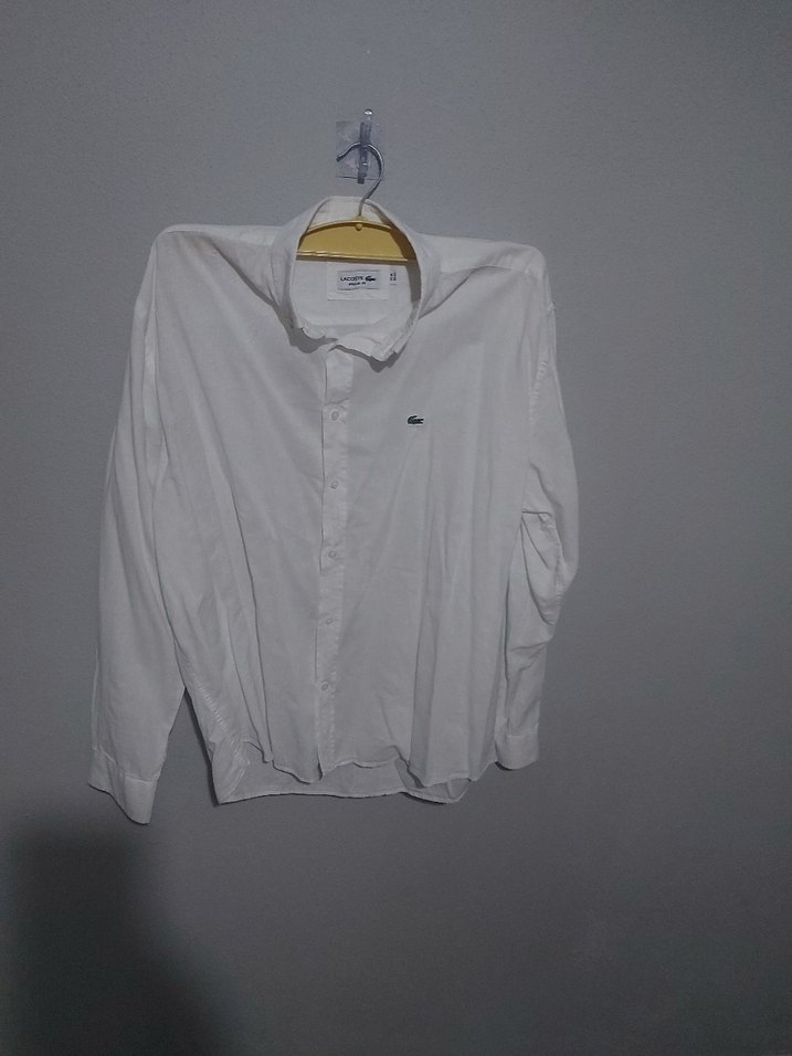 Lacoste markalı erkek keten gömlek, uzun kollu ve düğmeli önüyle bol kesim sunar. Beyaz renkte, yakalı ve günlük sokak stiline uygundur.