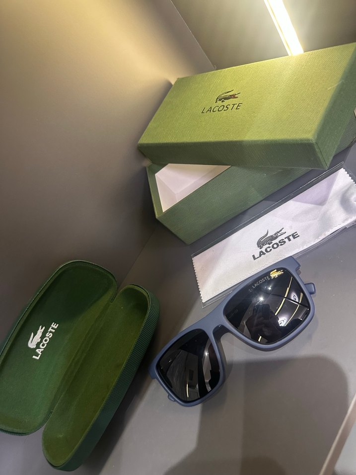 Lacoste erkek güneş gözlüğü, gri camlar ve haki çerçeveyle sokak tarzını yansıtıyor. Yeşil marka kutusu ve temizleme beziyle birlikte.