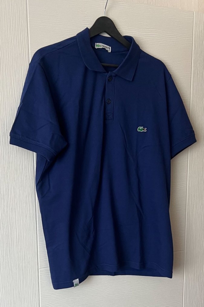 Lacoste markalı, yakalı ve düğmeli erkek polo tişört. Rahat kesimli, koyu lacivert renkli ve sentetik kumaştan üretilmiştir. Günlük kullanım için uygundur.