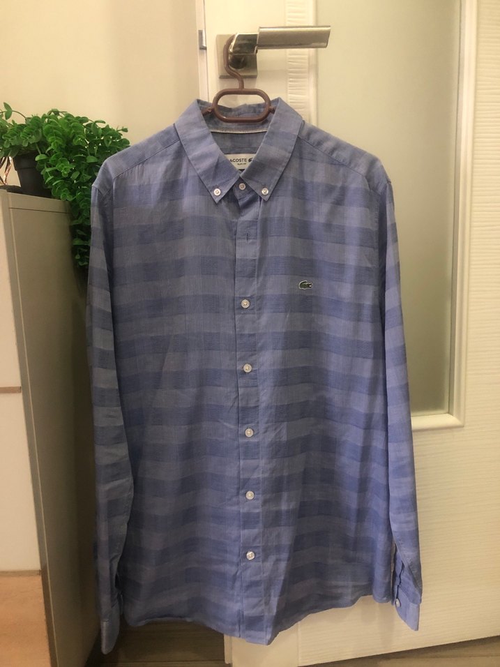 Lacoste markalı, uzun kollu, düğmeli, pamuklu kumaştan yapılmış mavi-gri tonlarında kareli desenli erkek gömleği. Rahat kesim ve günlük kullanıma uygun.