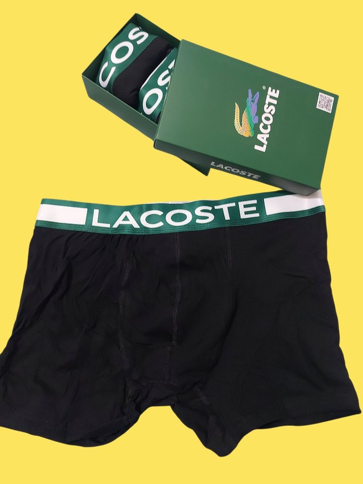 Lacoste markalı, yeşil ve siyah renklerde, baskılı logo detaylı, kısa ve dar kesim erkek boxer.