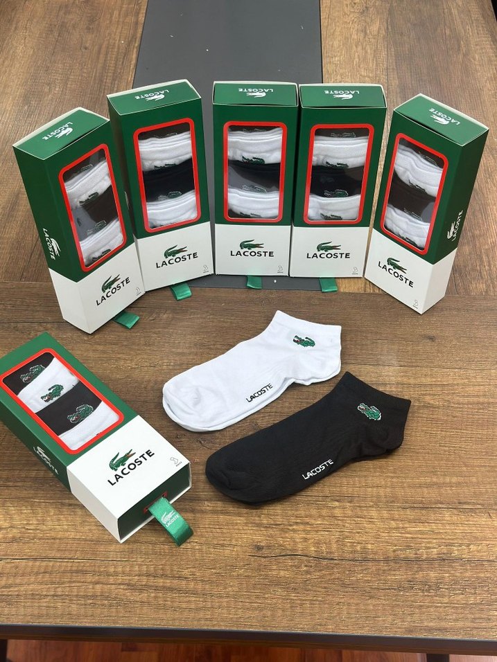 Lacoste marka, beyaz ve siyah renklerde, baskılı logolu erkek mini spor çorap seti. Kısa boy ve regular fit yapıya sahiptir.