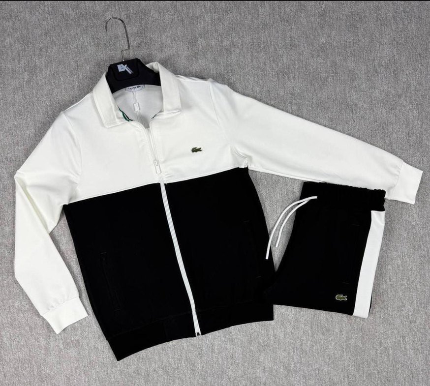 Lacoste erkek eşofman takımı uzun kollu, fermuarlı ve bisiklet yakalıdır. Siyah ve beyaz renklerde, rahat kesim ve kısa boydadır. Sokak ve spor tarzına uygun, yumuşak ve sıcak kumaştan üretilmiştir.