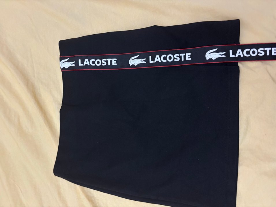 Siyah, baskılı Lacoste logo bantlı ve cırt cırtlı, fitted kesim etek Sportif ve trend günlük stil için uygundur. ♂️