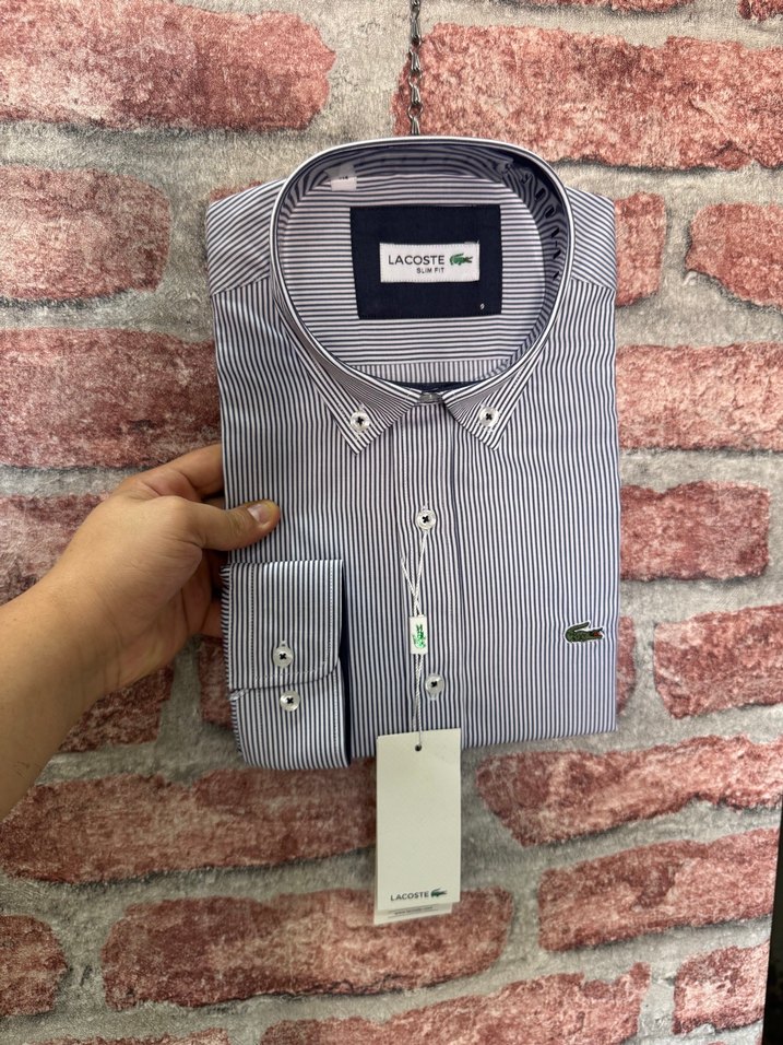 Lacoste marka, uzun kollu, düğmeli, yakalı ve regular fit kesime sahip gri çizgili erkek gömleği. Günlük kullanım için pamuklu kumaştan üretilmiştir. Yalnızca 1 adet.