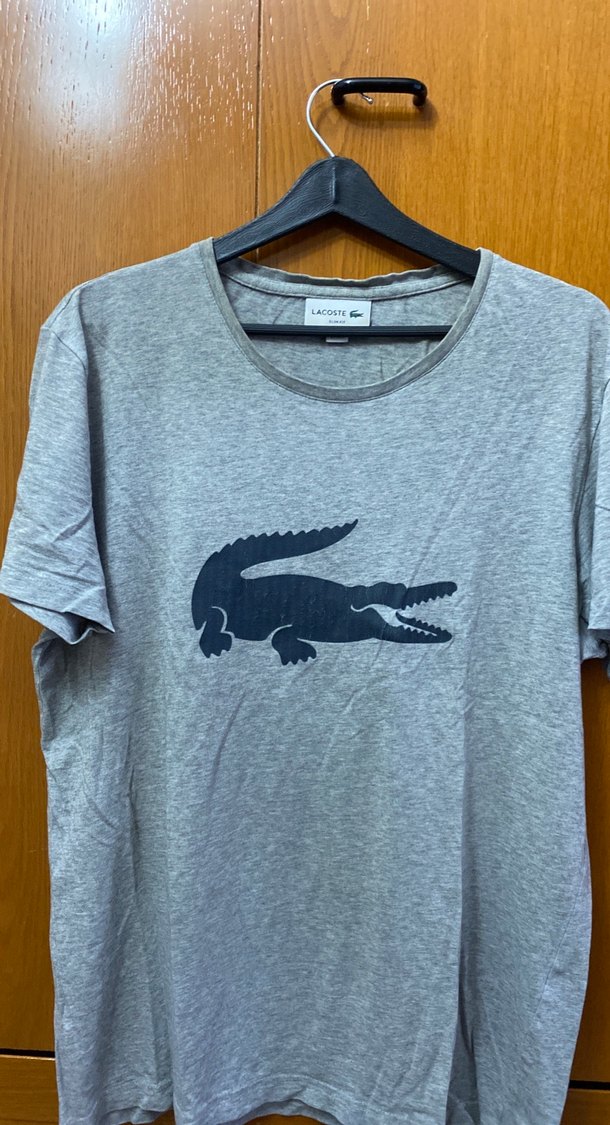 Lacoste erkek tişört, yuvarlak yaka ve kısa kollu, bol kesimdir. Yumuşak keten kumaştan yapılmış, önünde gri baskılı timsah logosu bulunur, günlük rahat şıklık sunar. Sadece koltuk altında küçük lekeler var birde arka sırtı kısmında hafif leke var yıkanabilir bilginiz olsun