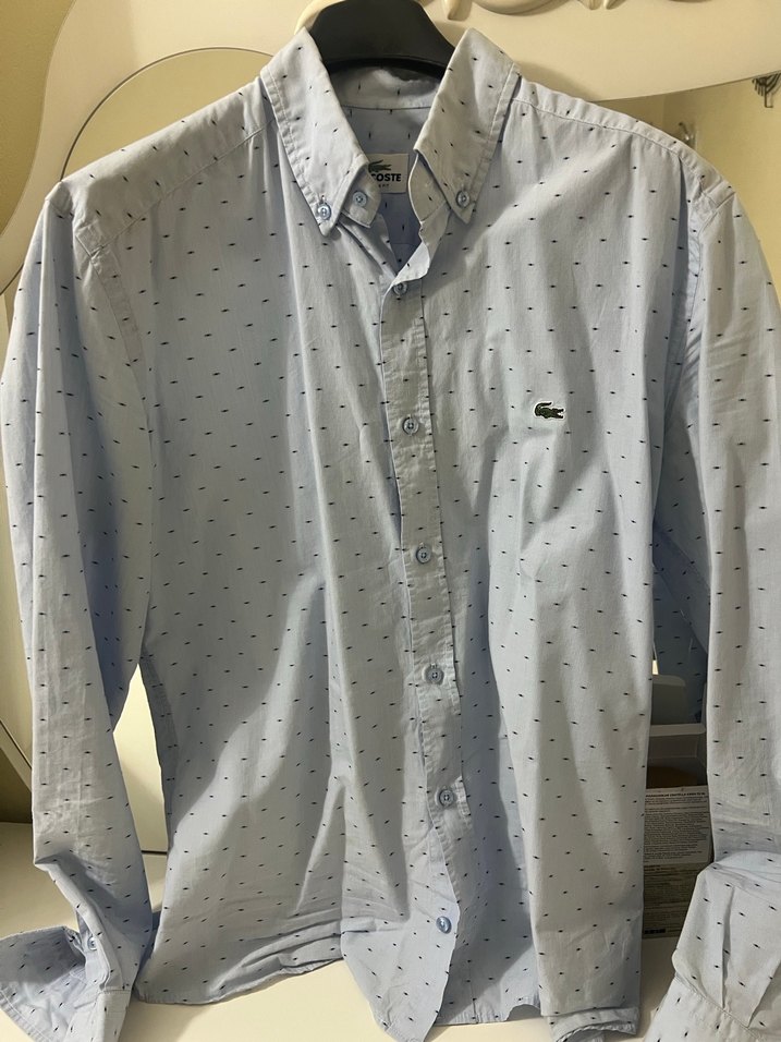 Lacoste marka, düğmeli, yakalı ve uzun kollu erkek gömleği. Pamuklu kumaştan, regular fit ve gri renkte, hafif desenlidir. Günlük rahat kullanım için uygundur.