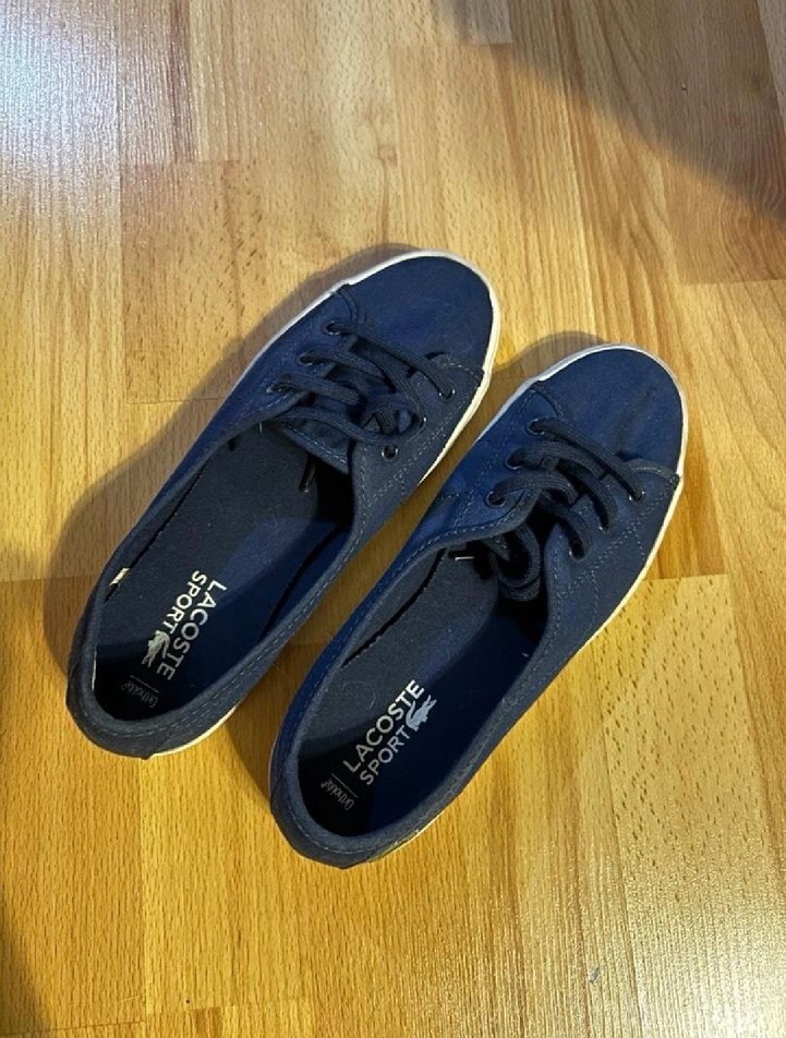 Lacivert renkte, bağcıklı ve düz tabanlı Lacoste kadın babet. Çok temiz, yeni gibi. En fazla 3 kere giyilmiştir. Yıllardır kullanmadığım için satıyorum