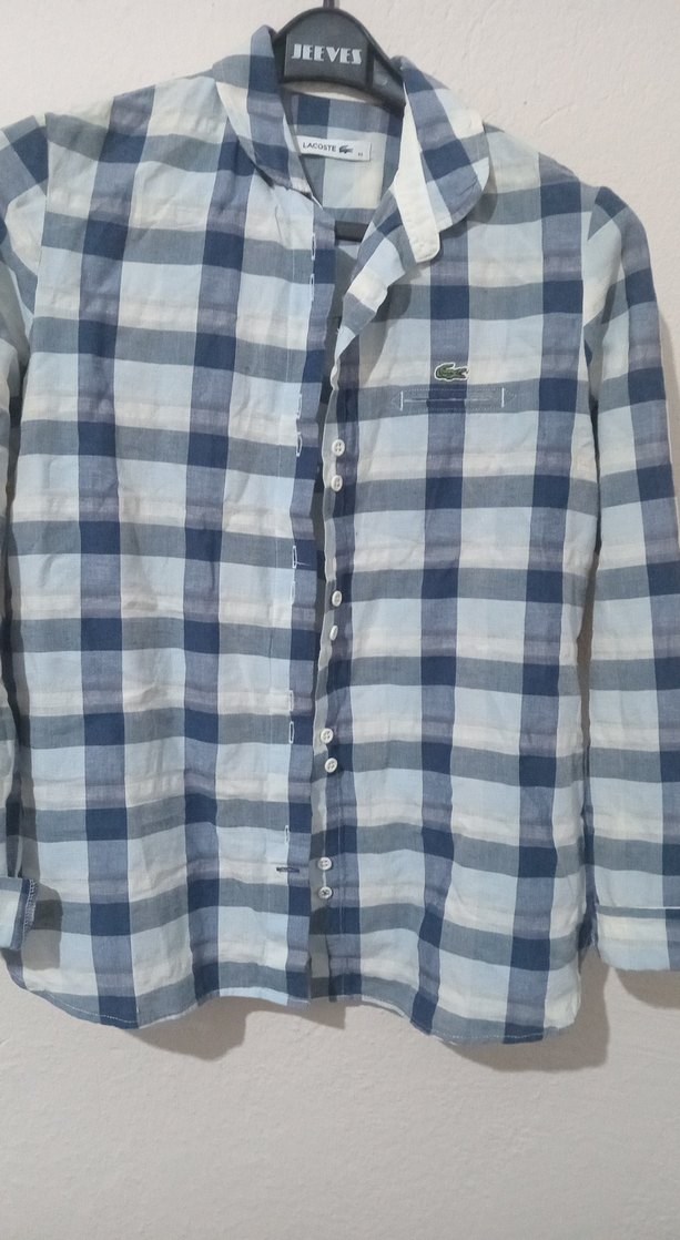 lacoste kadin  Mavi Kareli Uzun Kollu Gömlek - Görsel 1