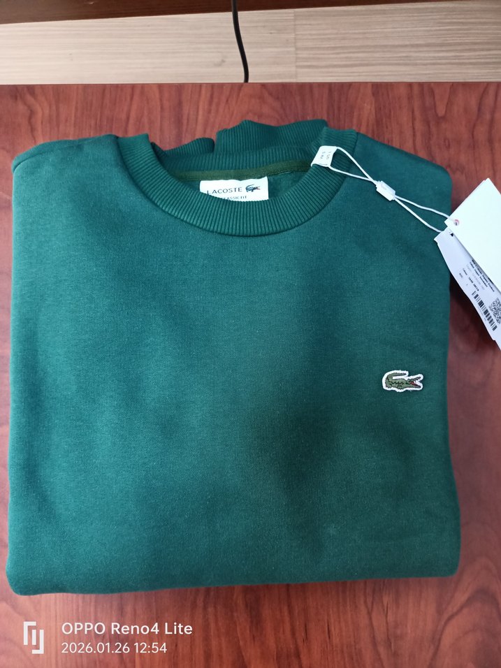Lacoste kadın sweatshirt, yuvarlak yakalı ve uzun kollu, bol kesimdir. Yumuşak kumaştan, koyu yeşil renkte ve desensizdir, rahat sokak stili için uygundur.