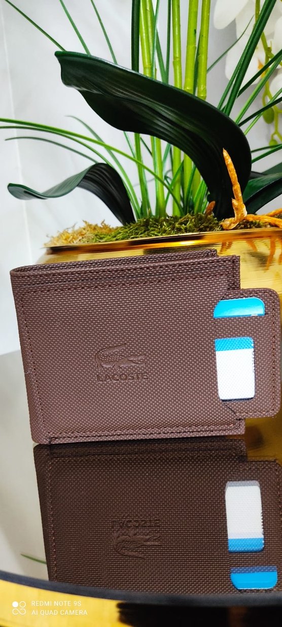 Koyu kahverengi Lacoste erkek cüzdan, baskılı dokulu yüzeye ve çağdaş tasarıma sahiptir. Trendy casual ve iş tarzına uygundur.