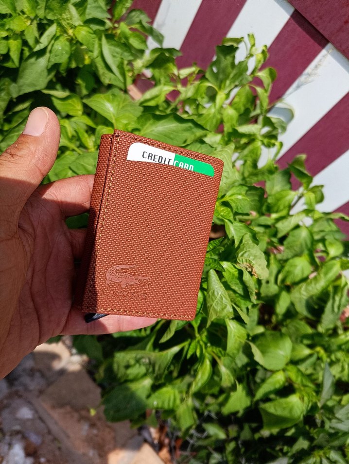 Lacoste markalı, kahverengi renkli, minimalist ve baskılı desenli erkek cüzdan. Streetwear tarzına uygun, kredi kartı bölmeli.