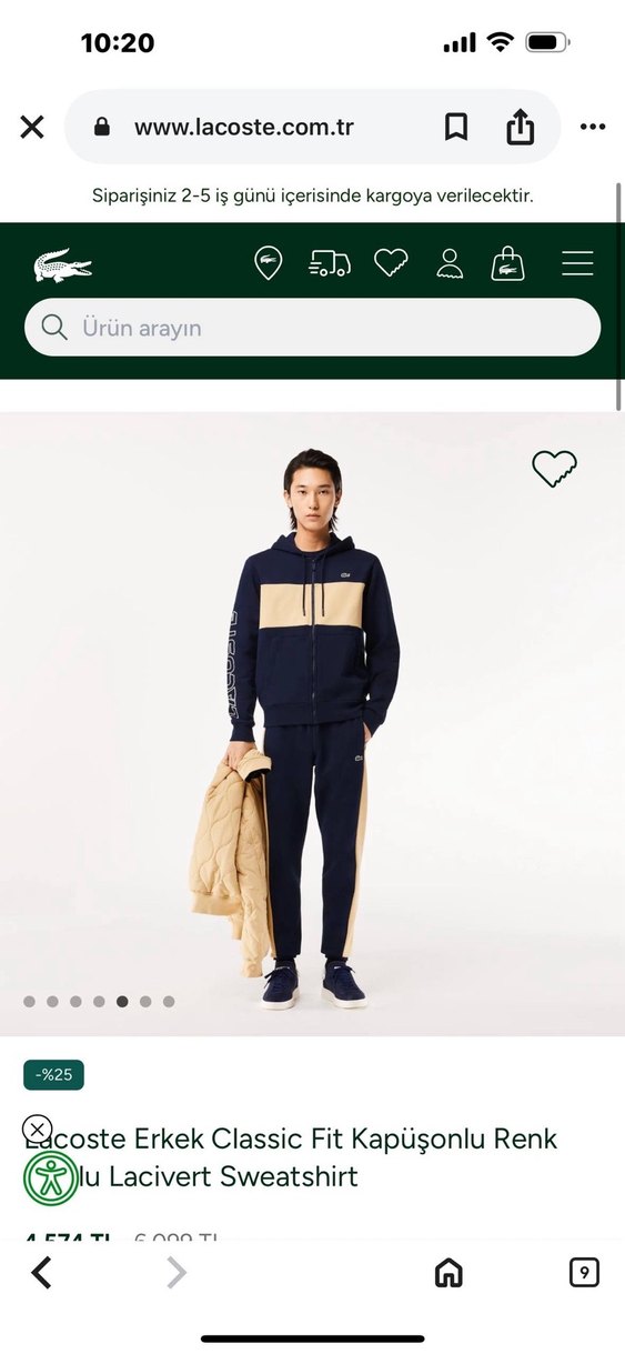LACOSTE } Kapüşonlu tam fermuarlı Erkek Sweatshirt