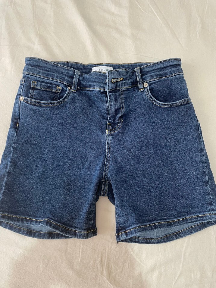 Lacoste Koyu mavi renkte, sade ve dar kesim mini denim şort. Günlük kullanıma uygun, zahmetsiz şıklık sunar.