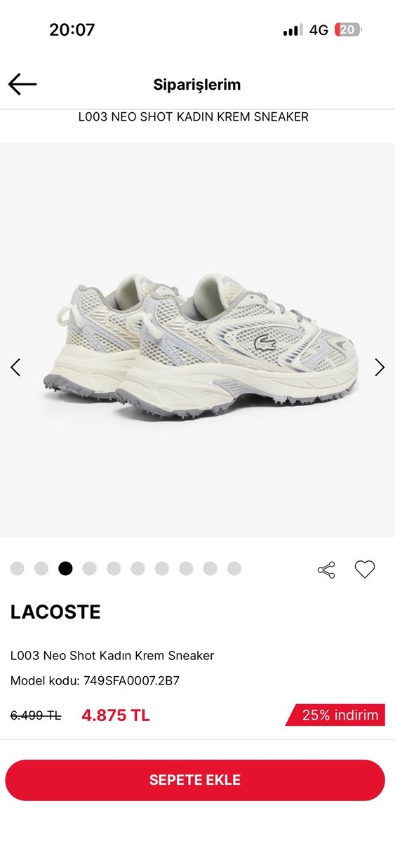 Lacoste L003 Neo Shot krem renkli kadın sneaker, yılan desenli ve ince topuklu, bağcıklı tasarımıyla spor sokak stiline uygun.