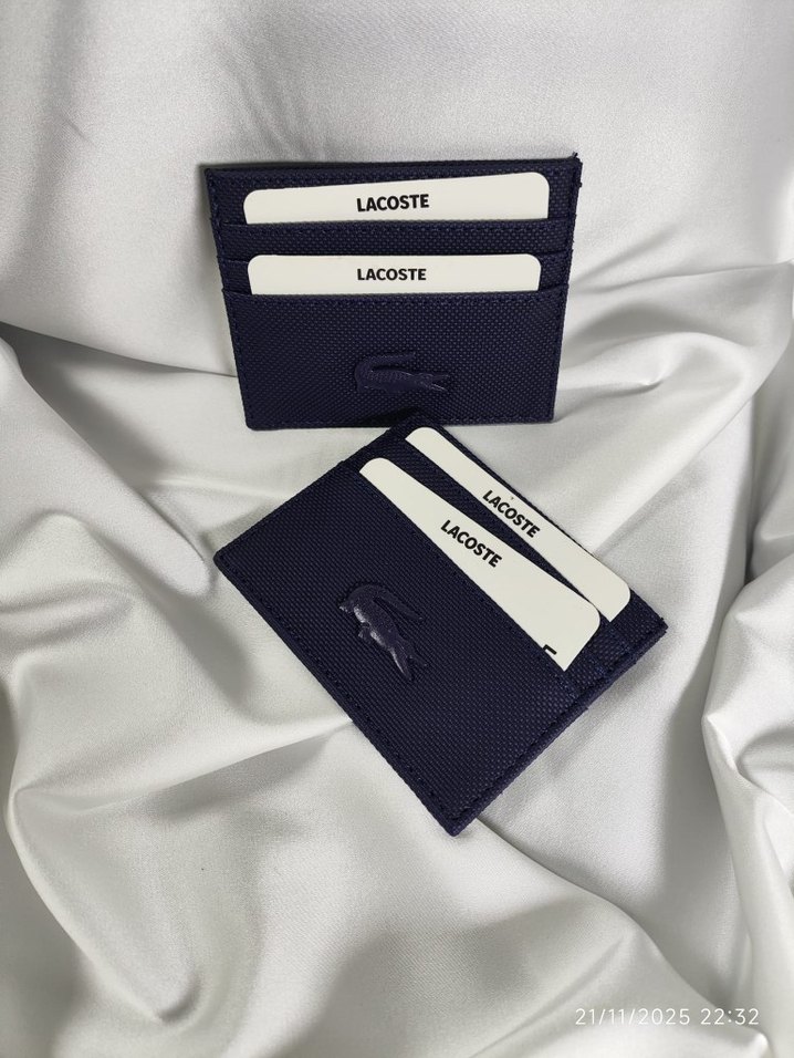 Lacoste marka, baskılı desenli lacivert erkek Kartlık, çoklu kart bölmeleriyle iş ve sokak stilini birleştirir.