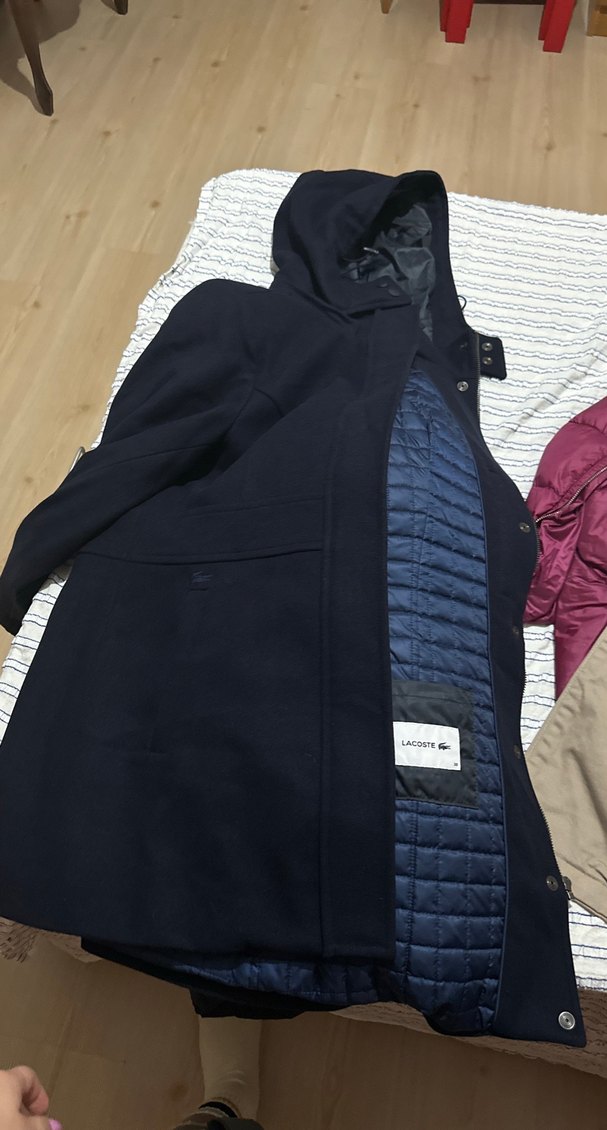 Lacoste markalı lacivert erkek kaban, kapüşonlu ve düğmeli. Normal boy ve regular fit, uzun kollu, yumuşak ve sıcak kumaştan üretilmiştir. Günlük rahat kullanım için uygundur.