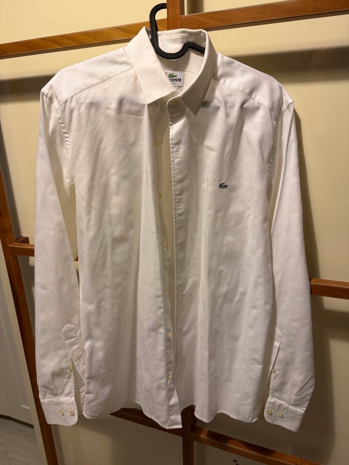 Lacoste marka Beyaz Erkek Klasik Keten Gömlek