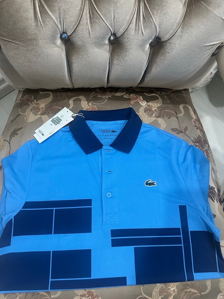 Lacoste Mavi Desenli Kısa Kollu Polo Tişört