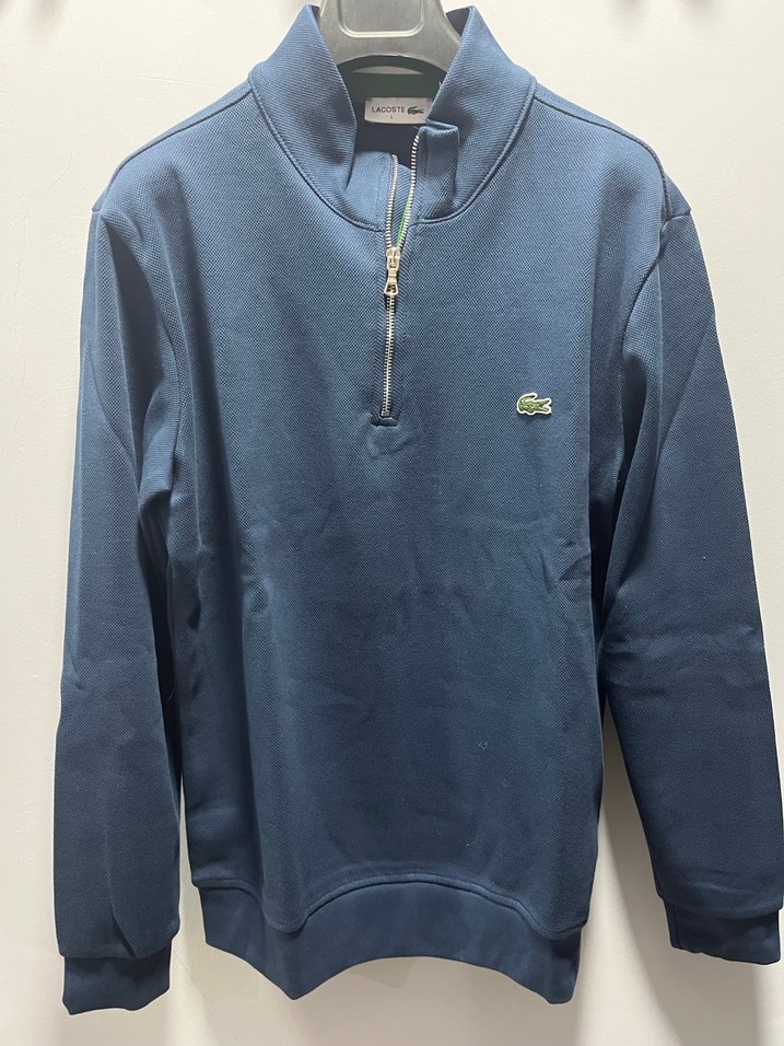 Mavi renkli Lacoste erkek sweatshirt, fermuarlı yuvarlak yaka ve uzun kolludur. Rahat kesimi ve yumuşak kumaşıyla günlük ve sokak stiline uygundur.