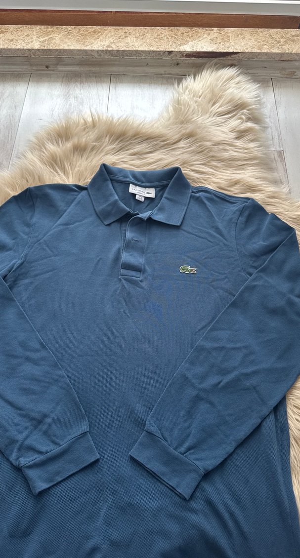 Lacoste markalı, düğmeli ve uzun kollu polo tişört. Yumuşak ve sıcak kumaştan, rahat kesim. Mavi renkte, küçük baskılı logo detaylıdır. Orjinal ve sorunsuzdur beden uymadığı icin satıyorum.
