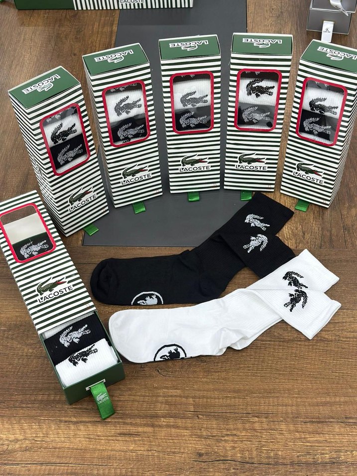 Lacoste erkek mini çoraplar, siyah ve beyaz renklerde baskılı timsah logosu ile, atletik tarzlar için kısa boy ve regular fit sunar.