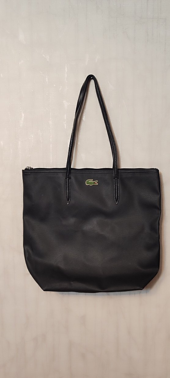 Lacoste orjinal Fermuarlı üst kısmı ve uzun sapları olan siyah deri kadın çantası. sıfır etiketsiz. 6000 tl ye alındı.