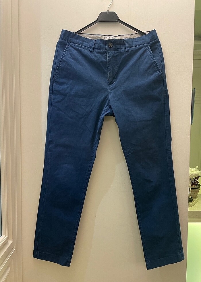 Lacoste marka orijinal pantolon. Lacivert renk 32 beden. Bel-paça arası boyu 95 cm. Bu yaz çok az kullanıldı.