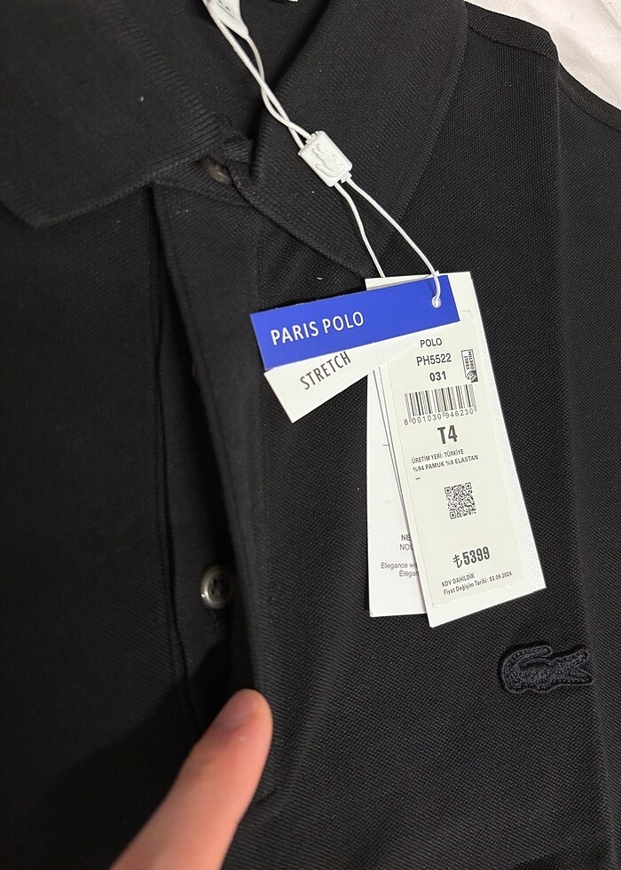 Orijinal lacoste paris siyah L beden etiketli sifir