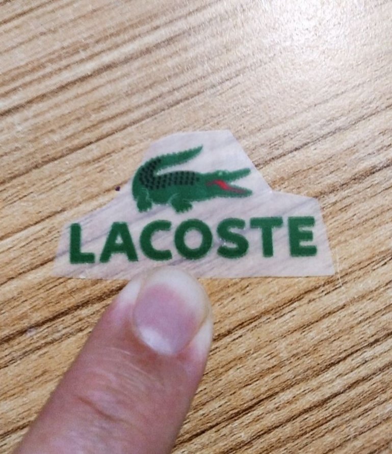 Açık kahverengi erkek rozeti, Lacoste logosu ve yeşil timsah figürü ile retro ve bohem tarzı yansıtıyor.